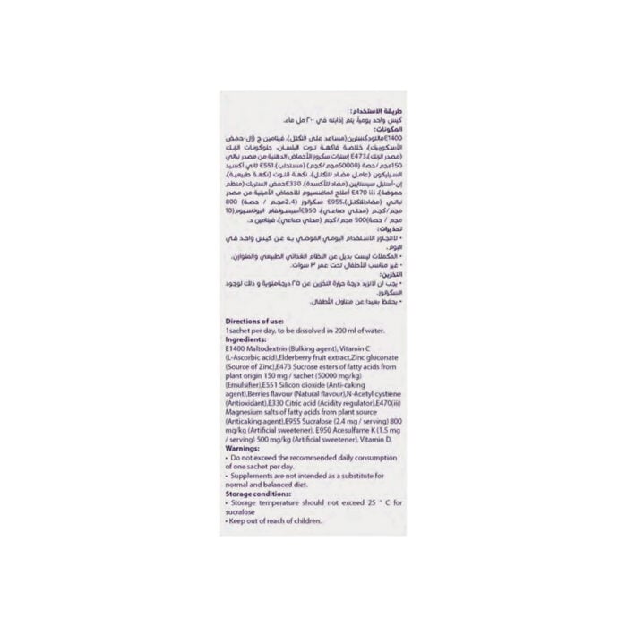 - كيس واحد يوميًا يتم إذابته في 200 مل من الماء.