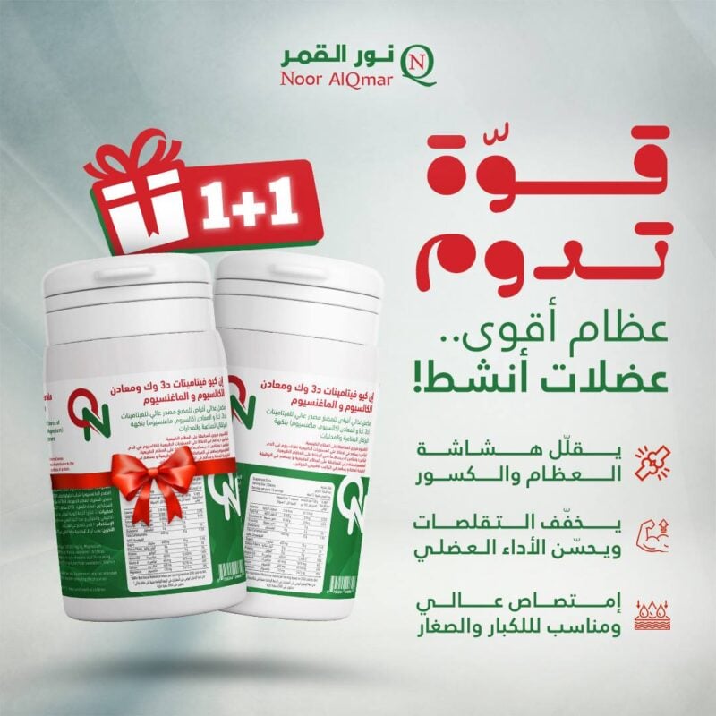 120 – 180Price range: 120 through 180عرض ان كيو فايتامينات د3 و ك ومعادن كالسيوم وماغنسيوم (1+1)
