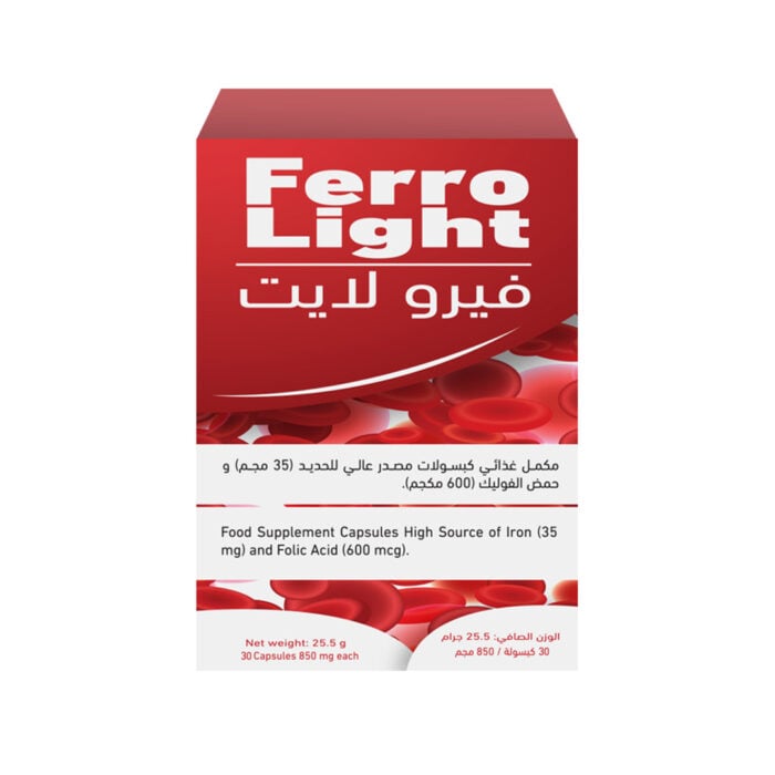Ferro light: Contains iron and folic acid for treating anemia (30 caps)
