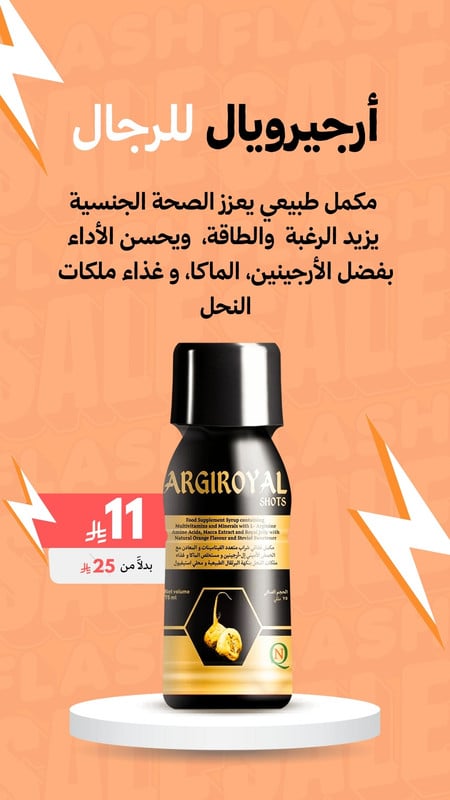 أرجيرويال هو مكمل غذائي طبيعي صُمم لتعزيز الصحة الجنسية، الرغبة، والأداء لدى الرجال. تركيبة متكاملة تجمع بين مكونات طبيعية فعّالة مثل إل-أرجينين، مستخلص الماكا، ورويال جيلي، مع الفيتامينات والمعادن الأساسية لضمان نتائج سريعة وآمنة.