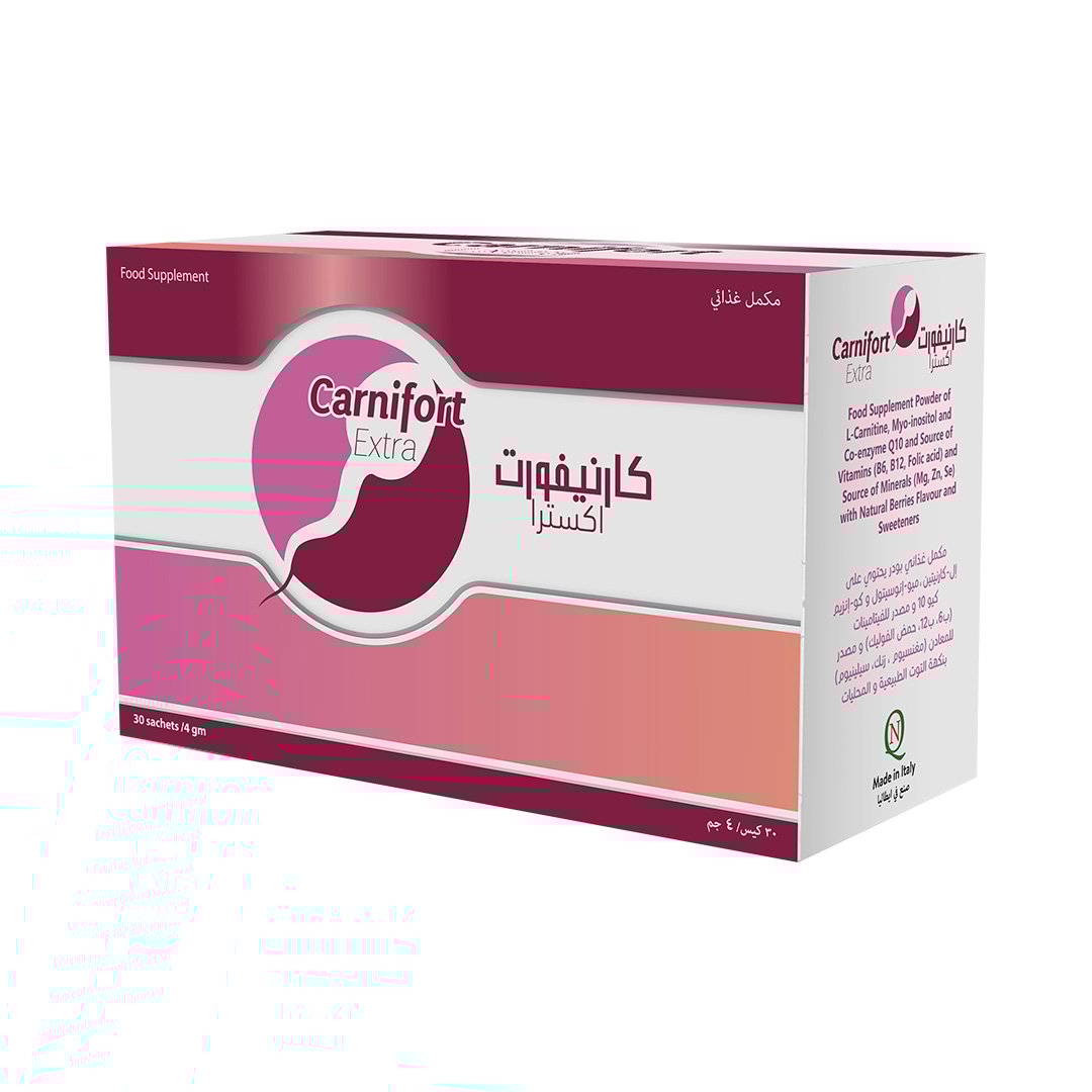 كارنيفورت إكسترا مكمل غذائي يدعم صحة النساء، ينظم الهرمونات، يعزز الخصوبة، ويحسن صحة المبايض. يحتوي على مكونات فعالة مثل إل-كارنيتين و ميواينيستول.
