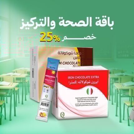 عزّز صحتك وصحة أطفالك مع شوكولاتة إيرون اكسترا لعلاج فقر الدم، وماما شوكولاتة اكسترا لتقوية العظام. تركيبة فعالة بطعم لذيذ، مناسبة للكبار والصغار، وامتصاص ممتاز بدون آثار جانبية. اطلب الآن!”