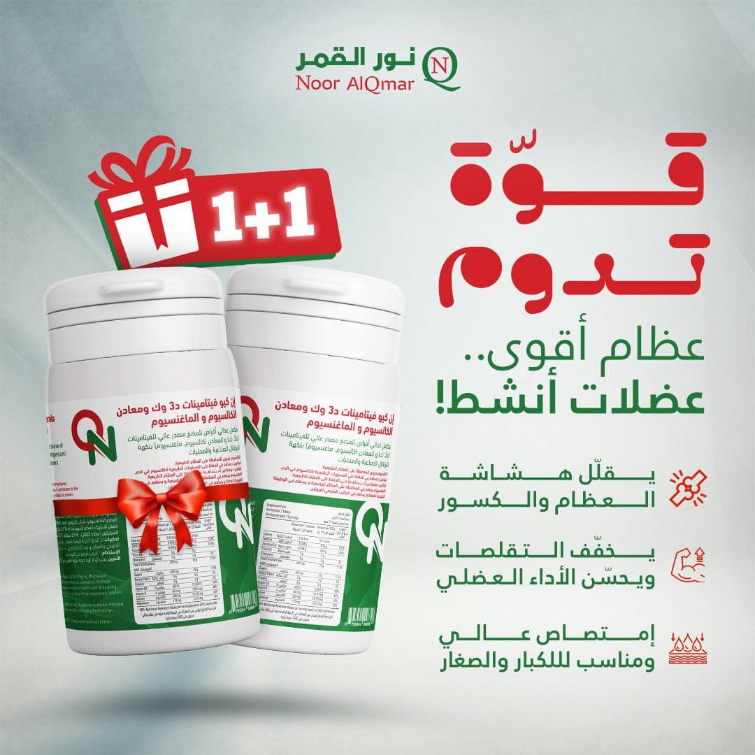 عرض ان كيو فايتامينات د3 و ك ومعادن كالسيوم وماغنسيوم (1+1)