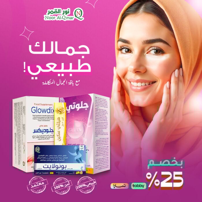 اكتشفي أفضل مكملات وكريمات الجمال: بونولايت، جلوديكس، جلوتي، وهيلثي سكين – لدعم الكولاجين، تفتيح البشرة، ومكافحة الشيخوخة بتركيبات مبتكرة.